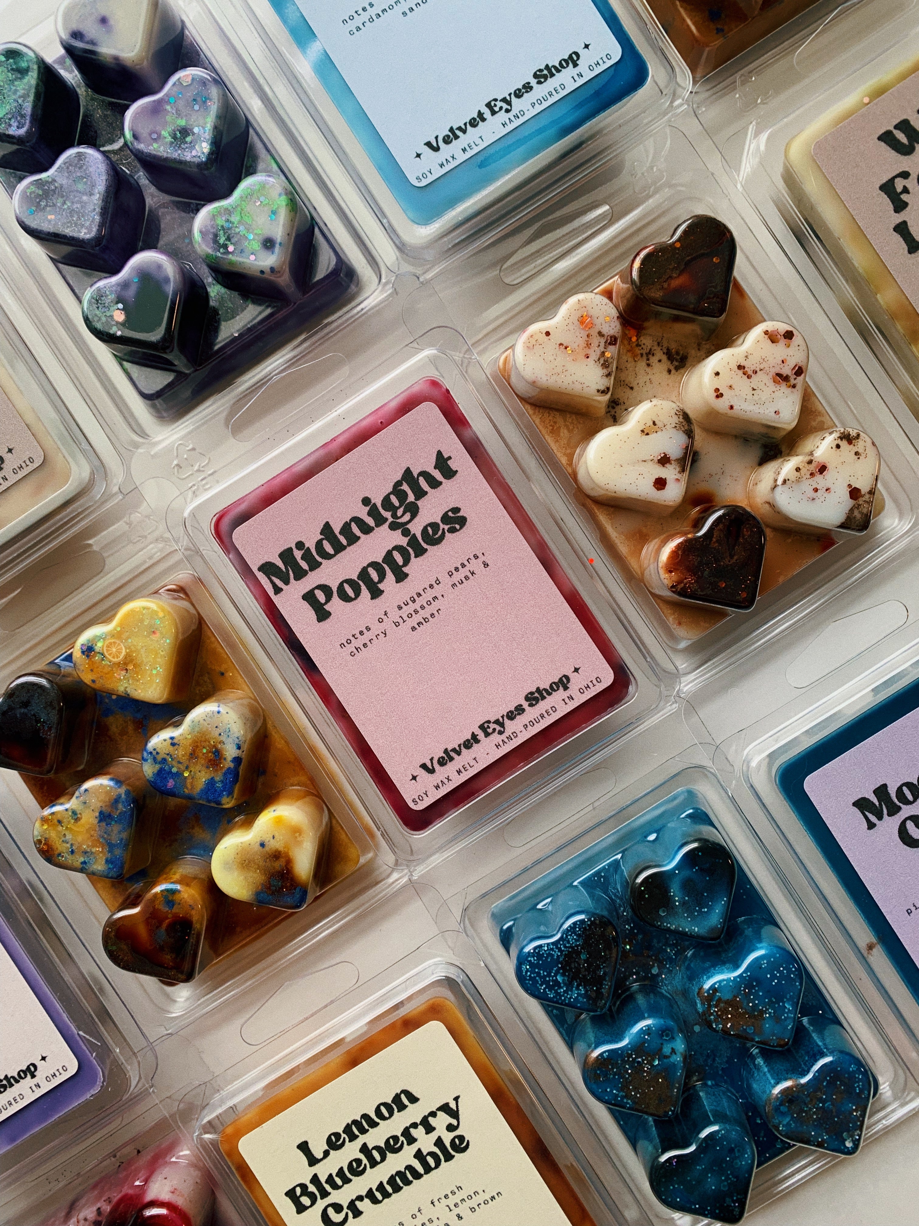 i started buying from velvet eyes a few years ago because of the halloween/horror candles. since then i'm always excited to see the new items in the collection. these wax melts all smell SO good, and they burn really beautifully. can't wait to try them all. also loved the mini wax sample that came with my package :)