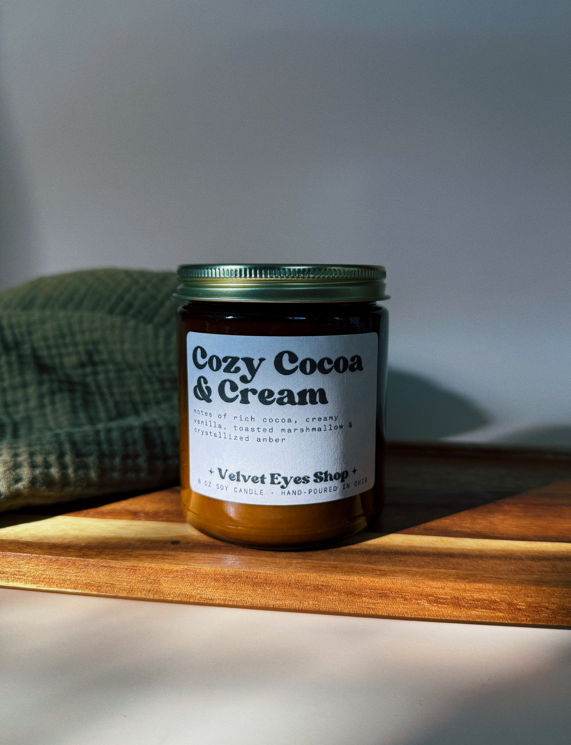 Mood: Imagine sinking into a plush armchair by a crackling fire, wrapped in a soft blanket, with a mug of rich hot cocoa in hand. That’s the vibe this Cozy Cocoa and Cream candle brings to the room. The scent is pure comfort: smooth, velvety chocolate paired with a swirl of creamy milk, like the perfect cup of cocoa after a chilly day. It's sweet without being overpowering, warm without being heavy—just like a cozy evening spent indoors. The mood? Blissfully relaxed and a little indulgent, as if you're being gently wrapped in warmth and sweetness. It’s the kind of scent that invites you to slow down, take a deep breath, and savor the simple pleasures, whether you’re curled up with a good book or enjoying a quiet moment with loved ones. It's the cozy winter hug you didn’t know you needed.