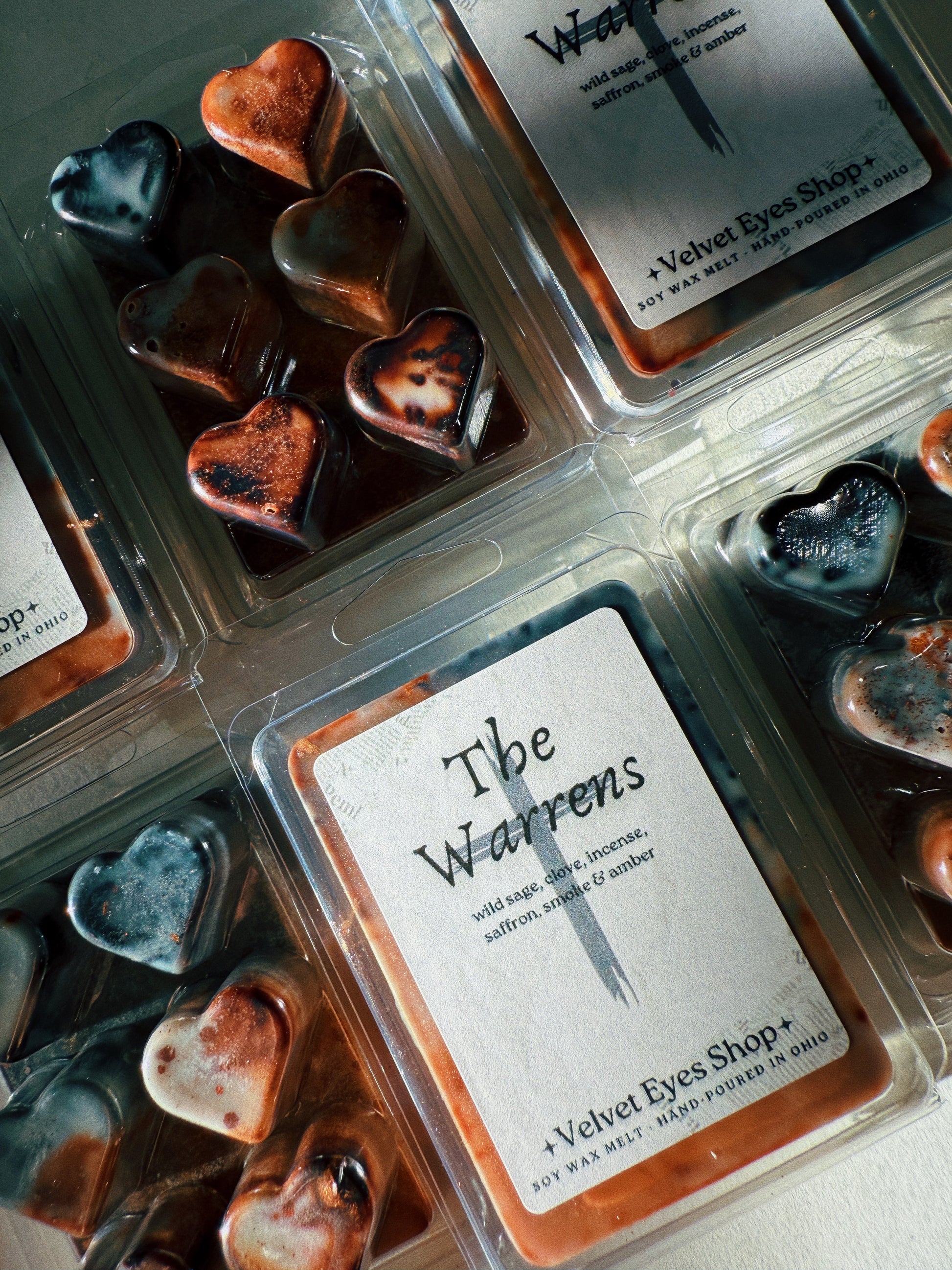 Step into the haunted archives of Ed and Lorraine Warren with this deeply atmospheric wax melt inspired by The Conjuring. Darkly mysterious yet warmly protective, The Warrens blends earthy wild sage and spiced clove with a veil of incense smoke. Golden threads of saffron add a sacred, otherworldly glow, while amber embers linger in the background; like a candle burning through the night against the shadows.